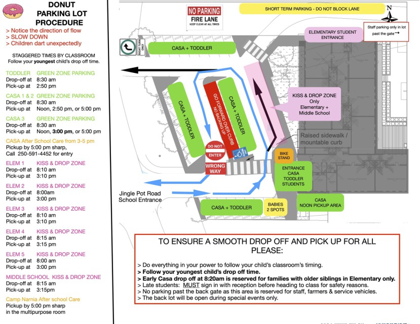 Additionally, the parking lot has a speficic direction of flow and has designated areas for each program to park.